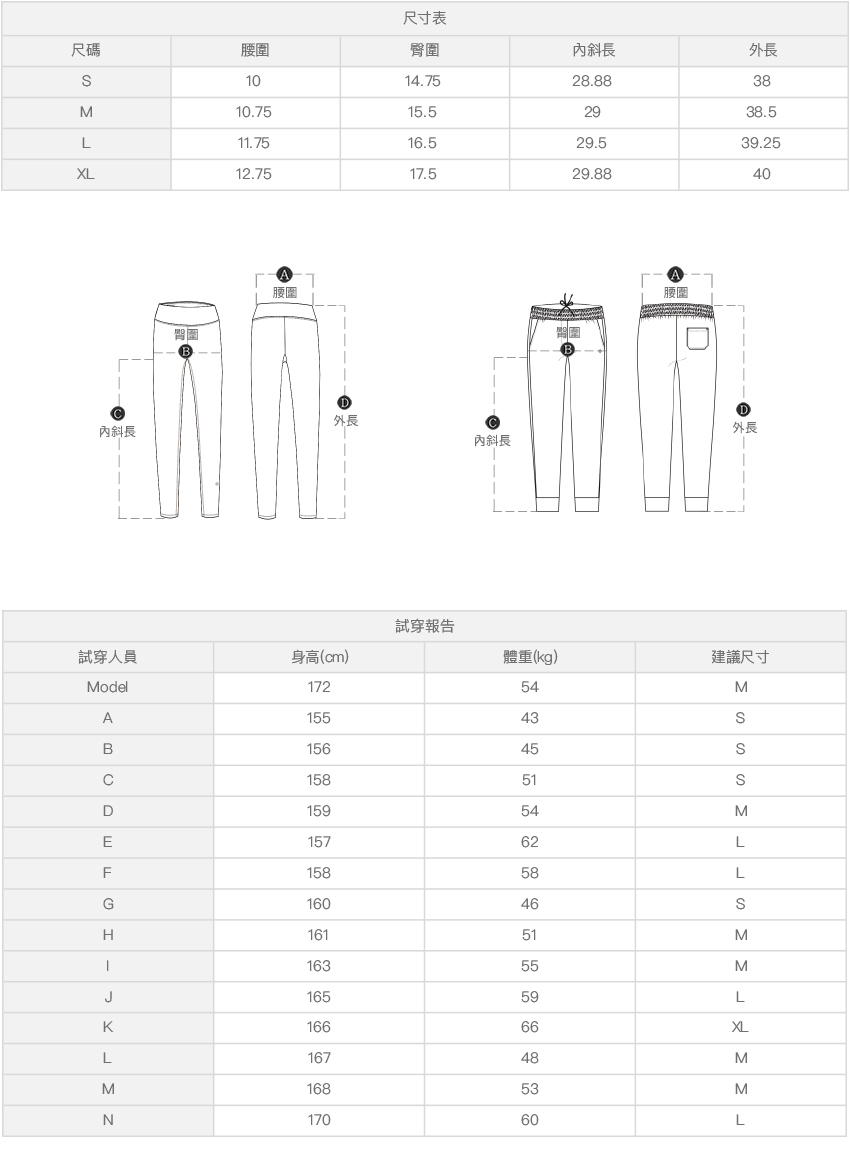 ※ 尺寸表及試穿報告僅提供尺碼對照資訊,實際合身程度則依據各款設計與各自身型會有所不同。