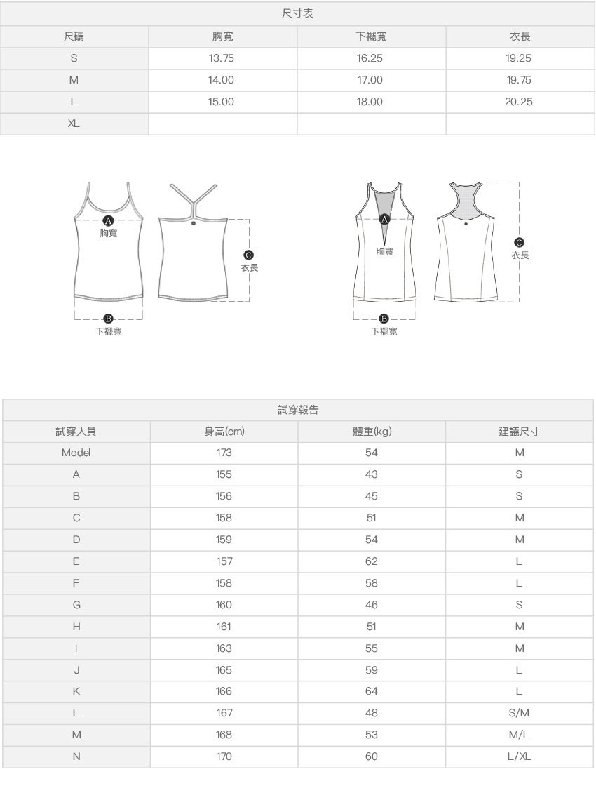 ※ 尺寸表及試穿報告僅提供尺碼對照資訊,實際合身程度則依據各款設計與各自身型會有所不同。