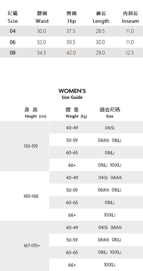 ※ 尺寸表及試穿報告僅提供尺碼對照資訊,實際合身程度則依據各款設計與各自身型會有所不同。