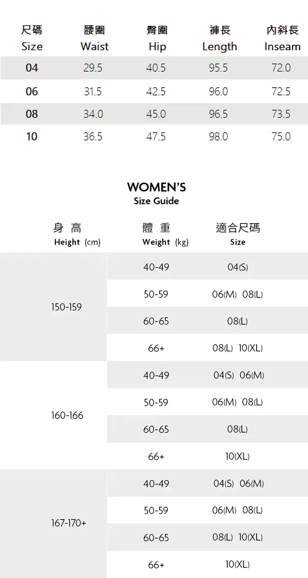 ※ 身高、體重與尺寸沒有絕對的關係,建議依照您個人穿著習慣及身形選購。
