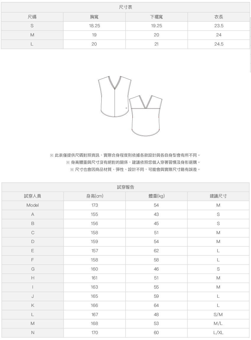 ※ 尺寸表及試穿報告僅提供尺碼對照資訊,實際合身程度則依據各款設計與各自身型會有所不同。