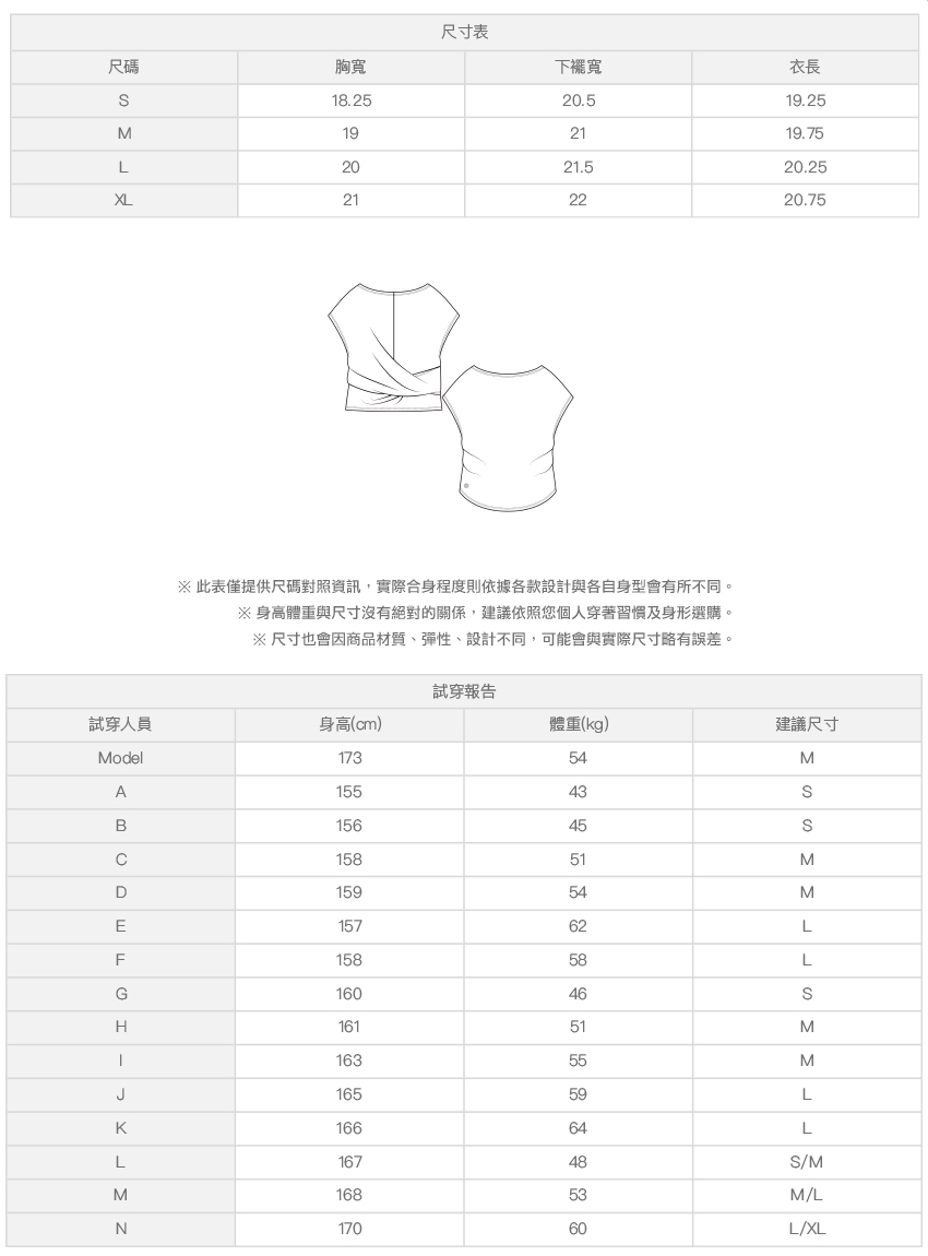 ※ 尺寸表及試穿報告僅提供尺碼對照資訊,實際合身程度則依據各款設計與各自身型會有所不同。
