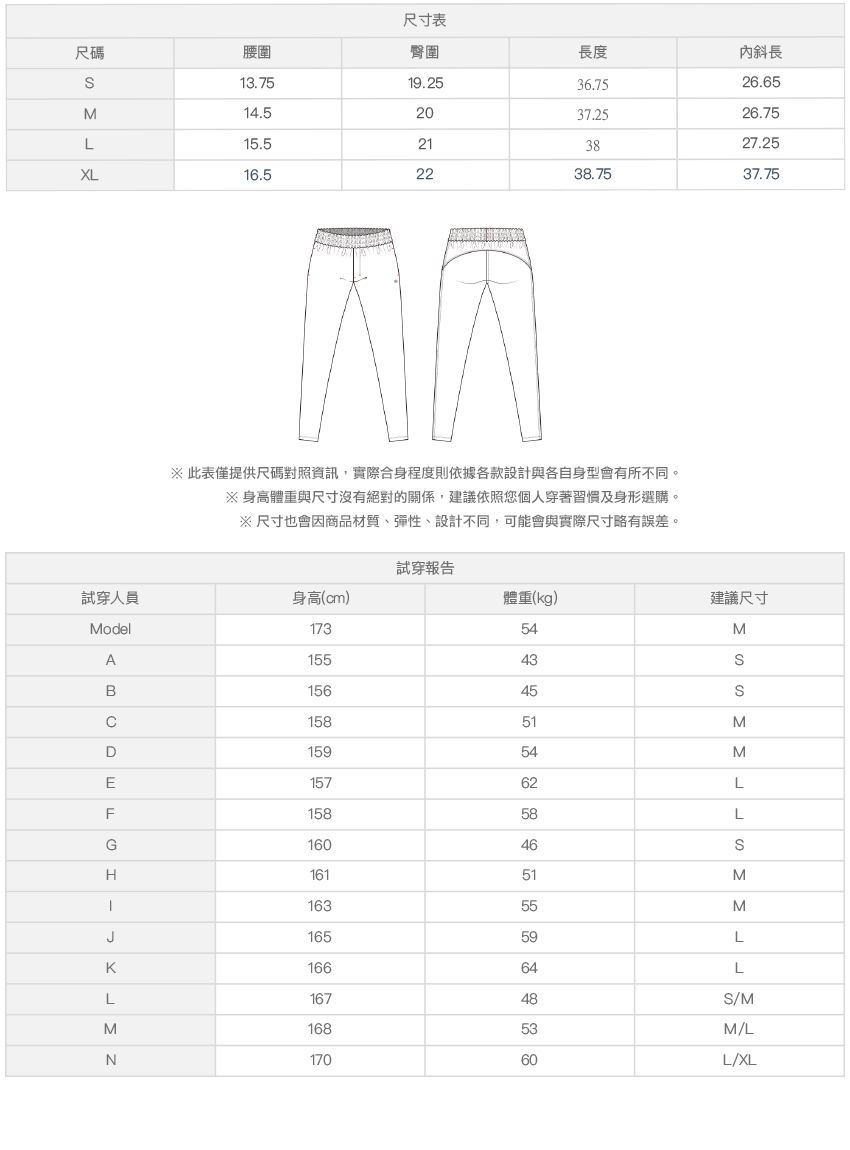 ※ 尺寸表及試穿報告僅提供尺碼對照資訊,實際合身程度則依據各款設計與各自身型會有所不同。