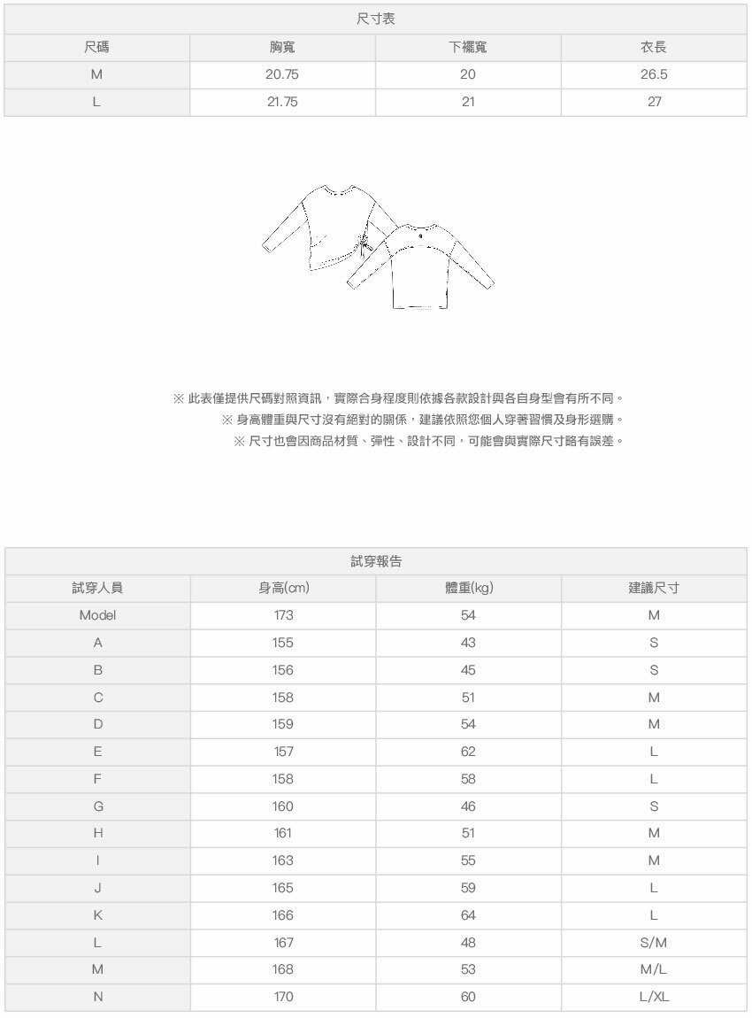 ※ 尺寸表及試穿報告僅提供尺碼對照資訊,實際合身程度則依據各款設計與各自身型會有所不同。