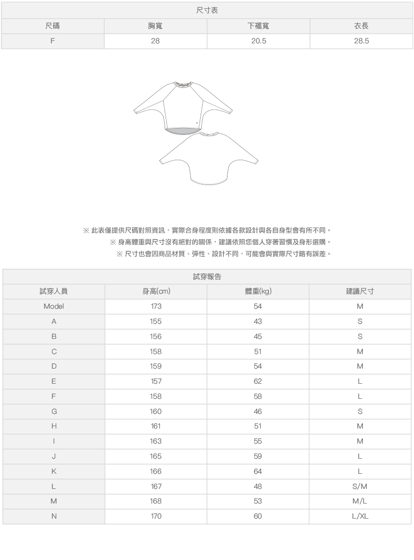 ※ 尺寸表及試穿報告僅提供尺碼對照資訊,實際合身程度則依據各款設計與各自身型會有所不同。