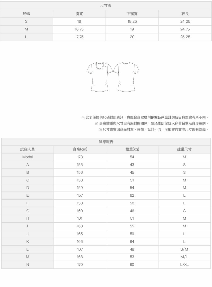 ※ 尺寸表及試穿報告僅提供尺碼對照資訊,實際合身程度則依據各款設計與各自身型會有所不同。