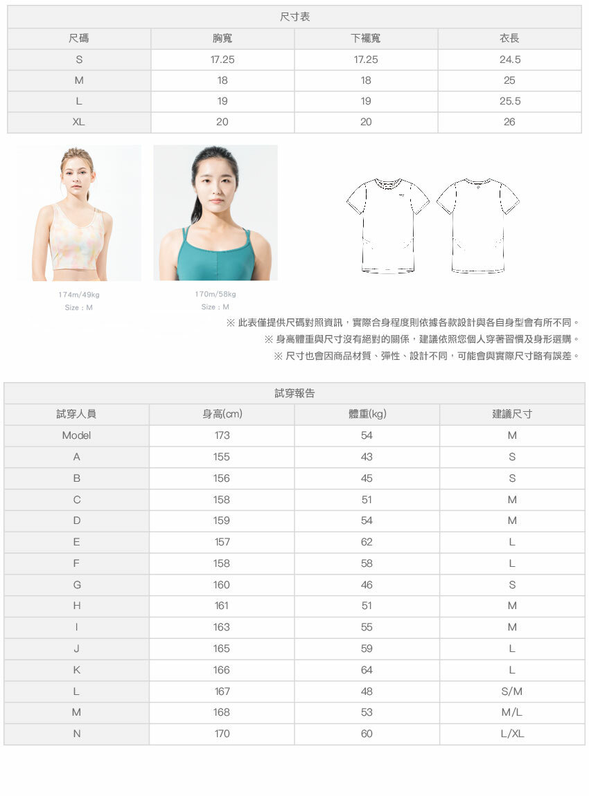 ※ 尺寸表及試穿報告僅提供尺碼對照資訊,實際合身程度則依據各款設計與各自身型會有所不同。