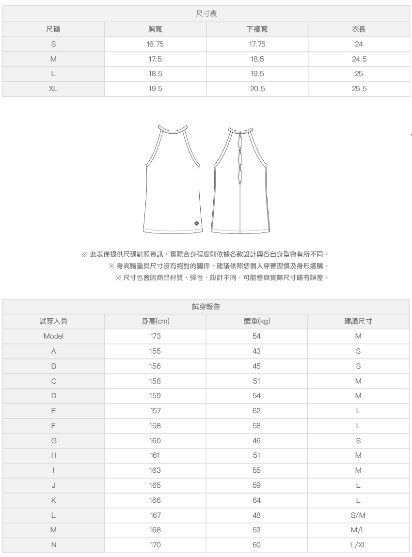 ※ 尺寸表及試穿報告僅提供尺碼對照資訊,實際合身程度則依據各款設計與各自身型會有所不同。