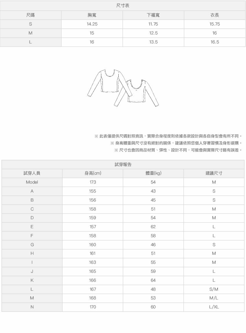 ※ 尺寸表及試穿報告僅提供尺碼對照資訊,實際合身程度則依據各款設計與各自身型會有所不同。
