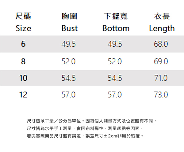 ※ 尺寸表及試穿報告僅提供尺碼對照資訊,實際合身程度則依據各款設計與各自身型會有所不同。