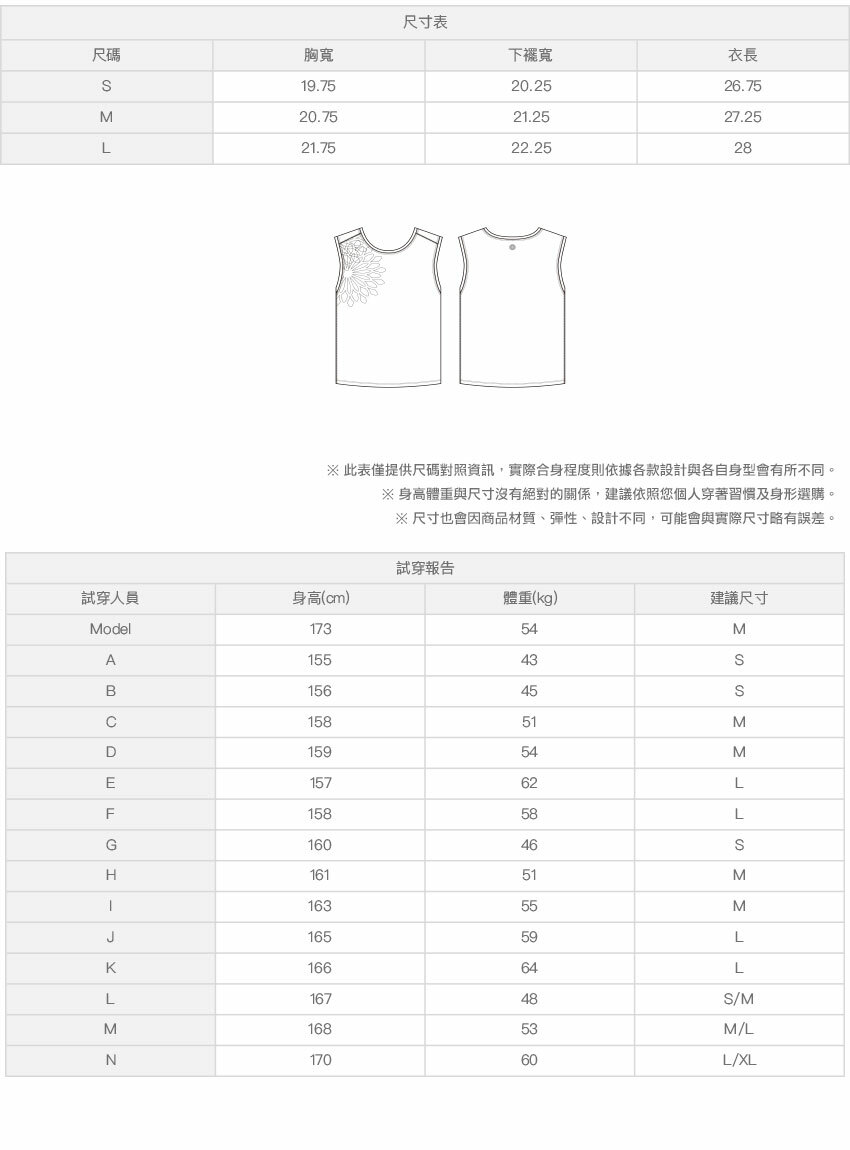 ※ 尺寸表及試穿報告僅提供尺碼對照資訊,實際合身程度則依據各款設計與各自身型會有所不同。