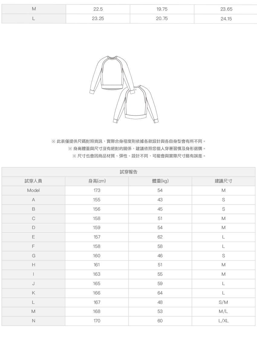 ※ 尺寸表及試穿報告僅提供尺碼對照資訊,實際合身程度則依據各款設計與各自身型會有所不同。