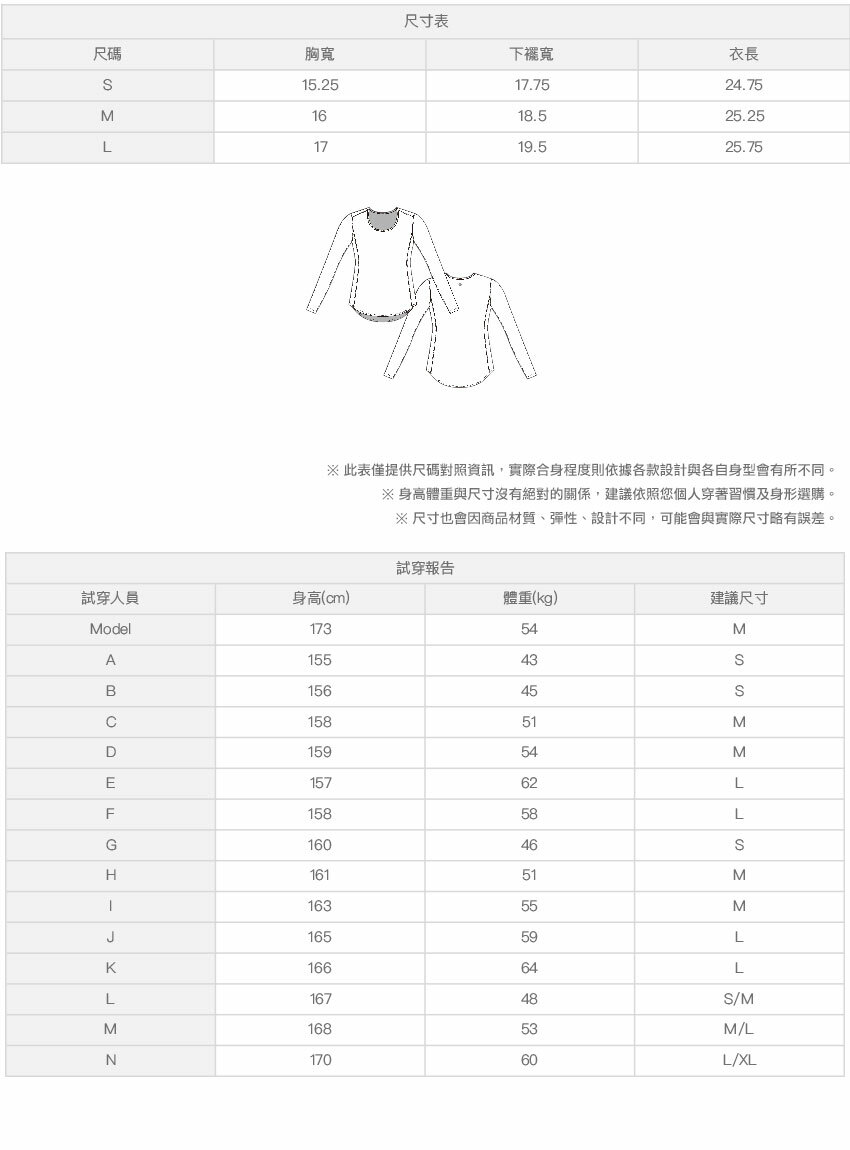 ※ 身高、體重與尺寸沒有絕對的關係,建議依照您個人穿著習慣及身形選購。