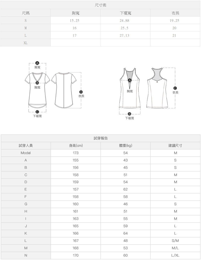 ※ 尺寸表及試穿報告僅提供尺碼對照資訊,實際合身程度則依據各款設計與各自身型會有所不同。