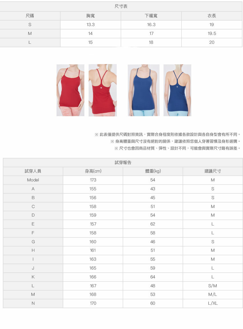 ※ 尺寸表及試穿報告僅提供尺碼對照資訊,實際合身程度則依據各款設計與各自身型會有所不同。