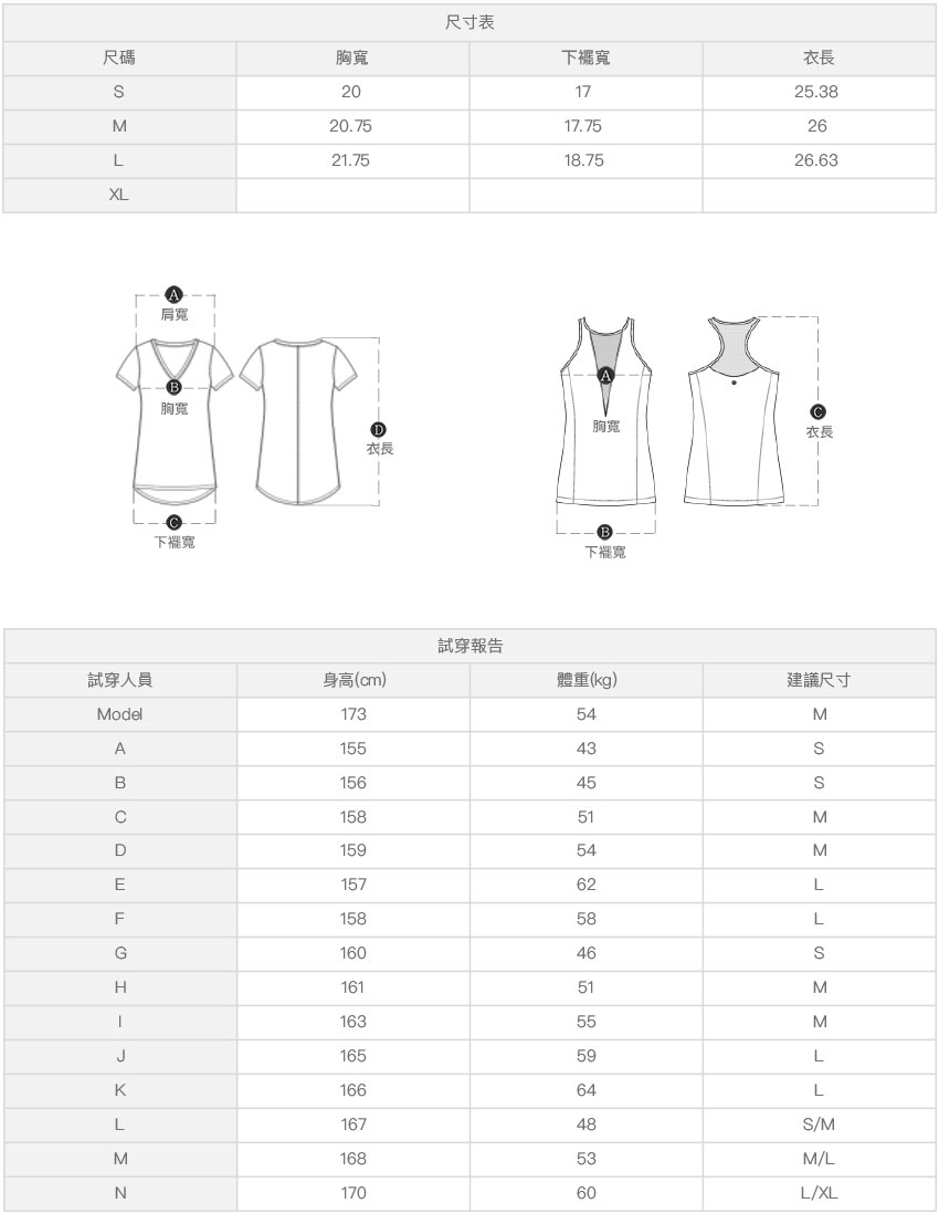 ※ 尺寸表及試穿報告僅提供尺碼對照資訊,實際合身程度則依據各款設計與各自身型會有所不同。