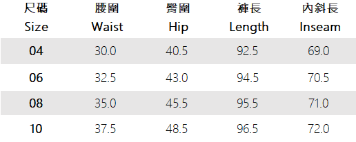 ※ 尺寸表及試穿報告僅提供尺碼對照資訊,實際合身程度則依據各款設計與各自身型會有所不同。