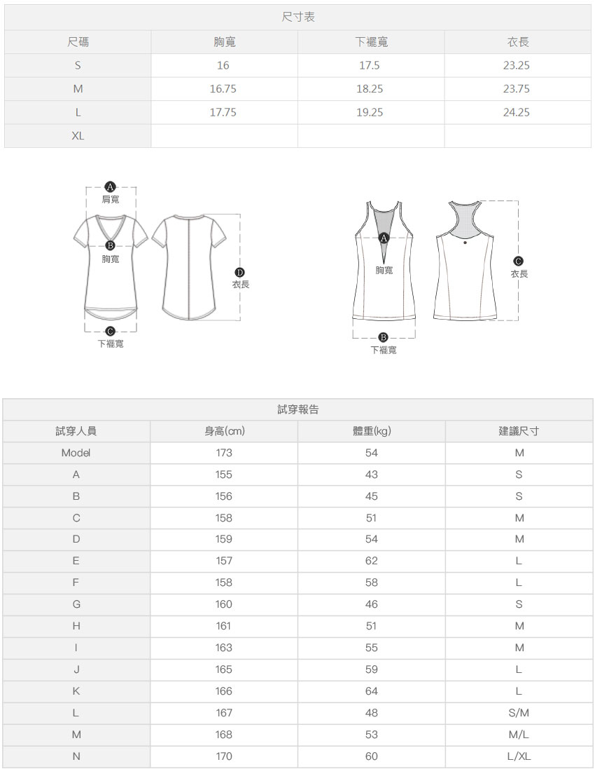 ※ 尺寸表及試穿報告僅提供尺碼對照資訊,實際合身程度則依據各款設計與各自身型會有所不同。