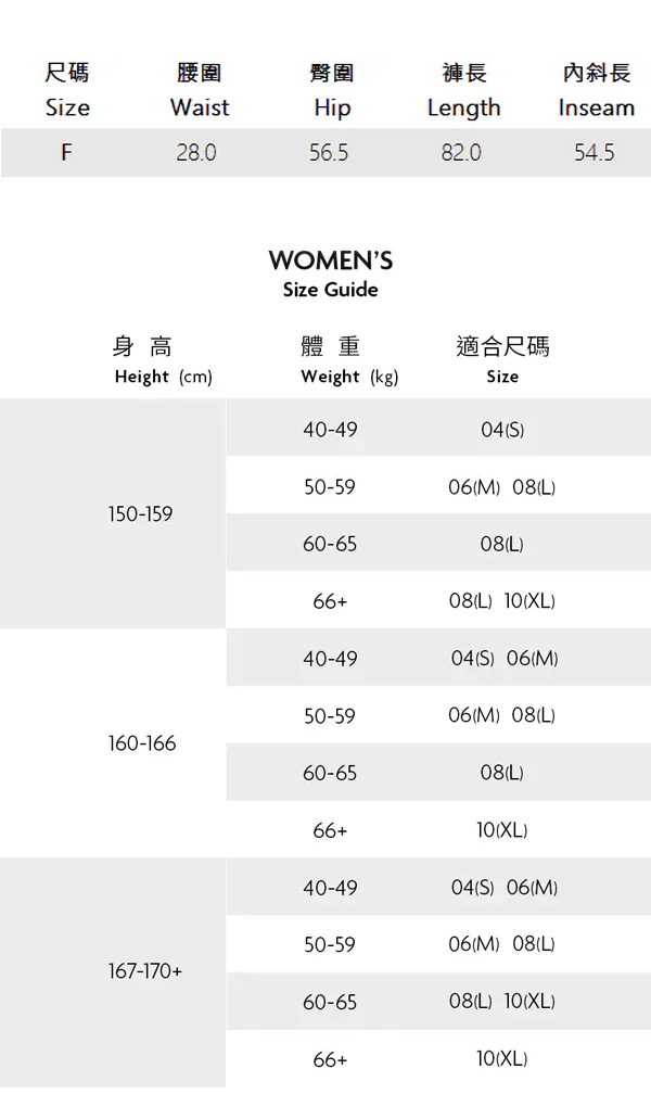 ※ 尺寸表及試穿報告僅提供尺碼對照資訊,實際合身程度則依據各款設計與各自身型會有所不同。