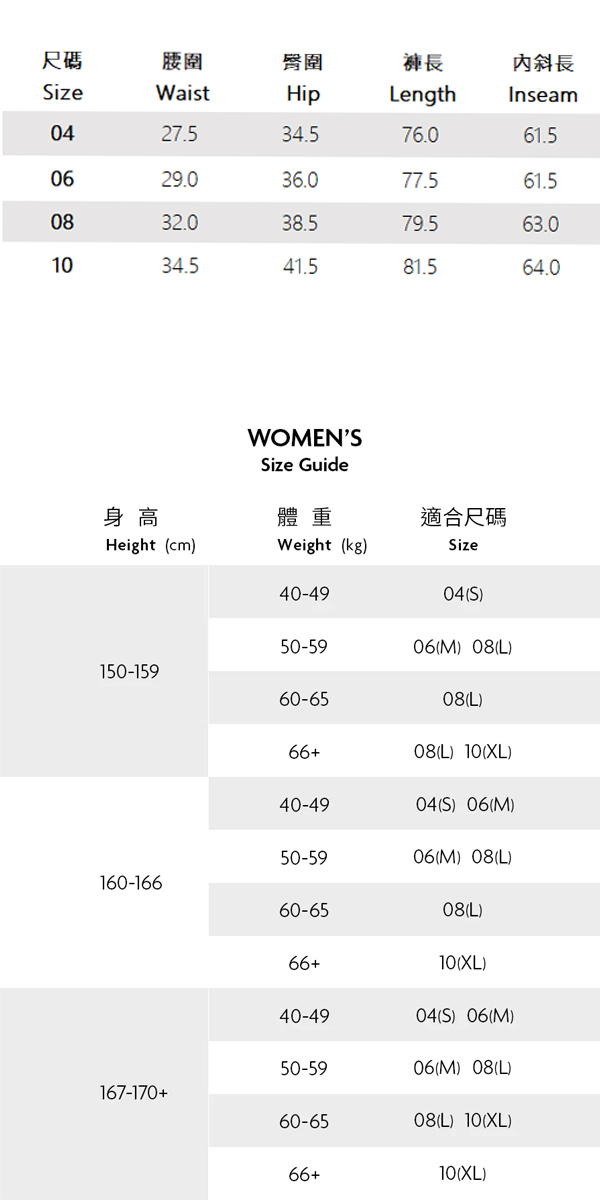 ※ 尺寸表及試穿報告僅提供尺碼對照資訊,實際合身程度則依據各款設計與各自身型會有所不同。