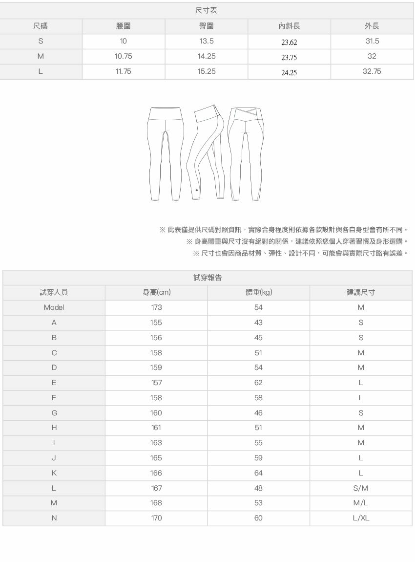 ※ 尺寸表及試穿報告僅提供尺碼對照資訊,實際合身程度則依據各款設計與各自身型會有所不同。