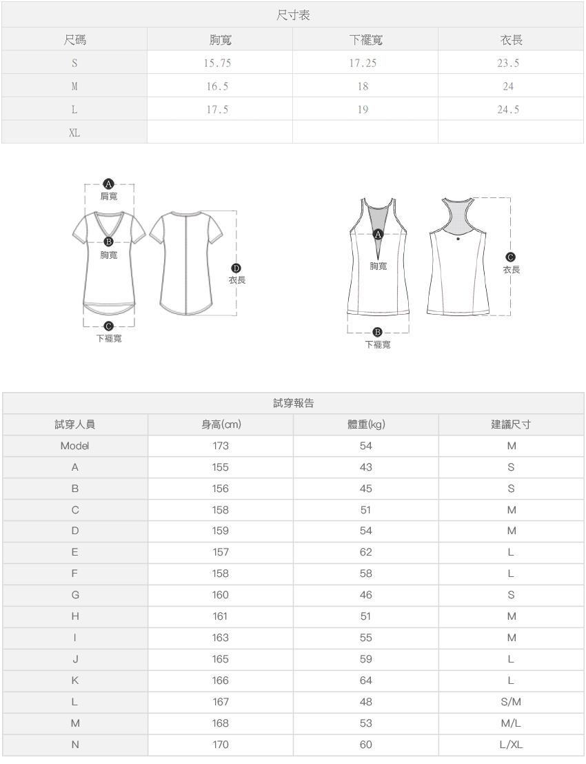 ※ 尺寸表及試穿報告僅提供尺碼對照資訊,實際合身程度則依據各款設計與各自身型會有所不同。