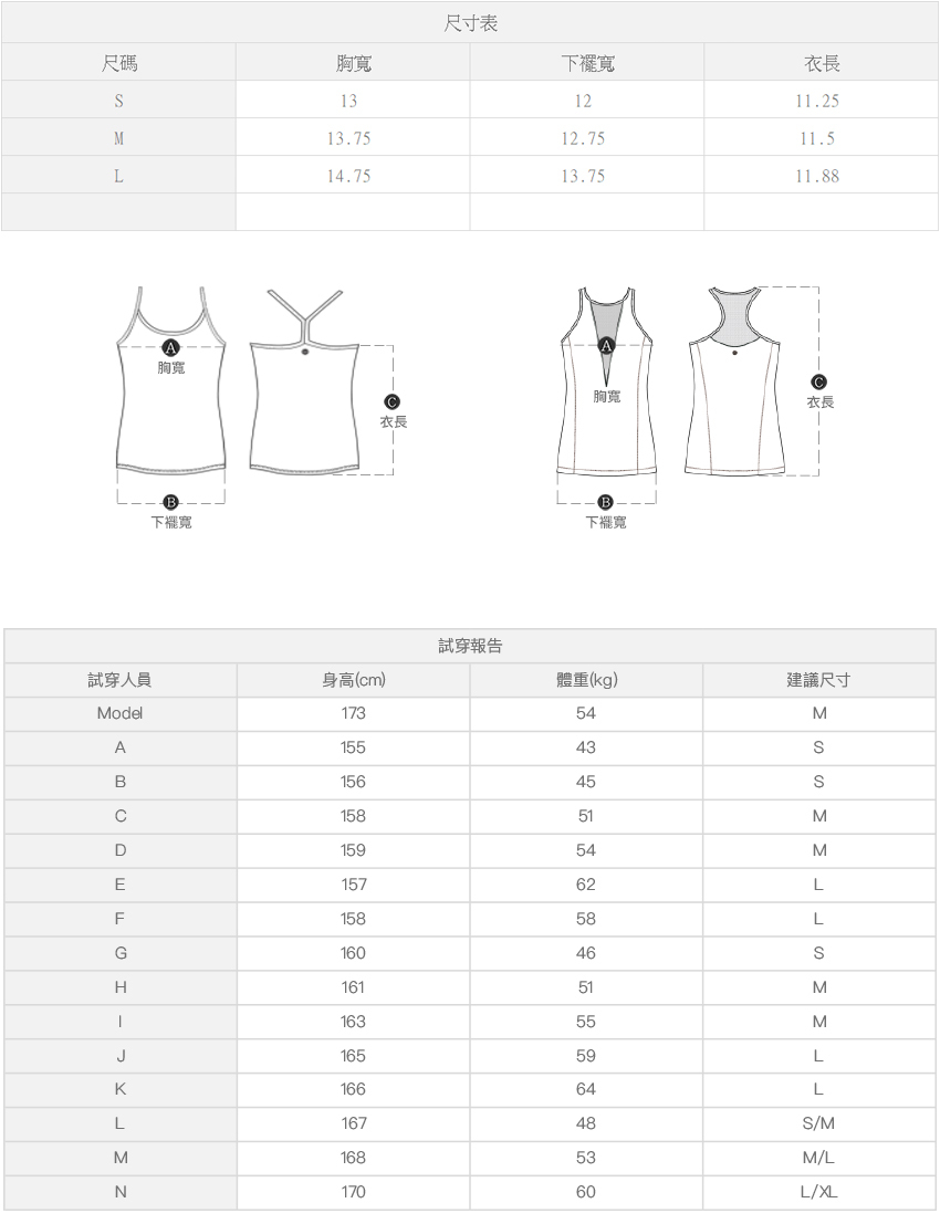 ※ 尺寸表及試穿報告僅提供尺碼對照資訊,實際合身程度則依據各款設計與各自身型會有所不同。