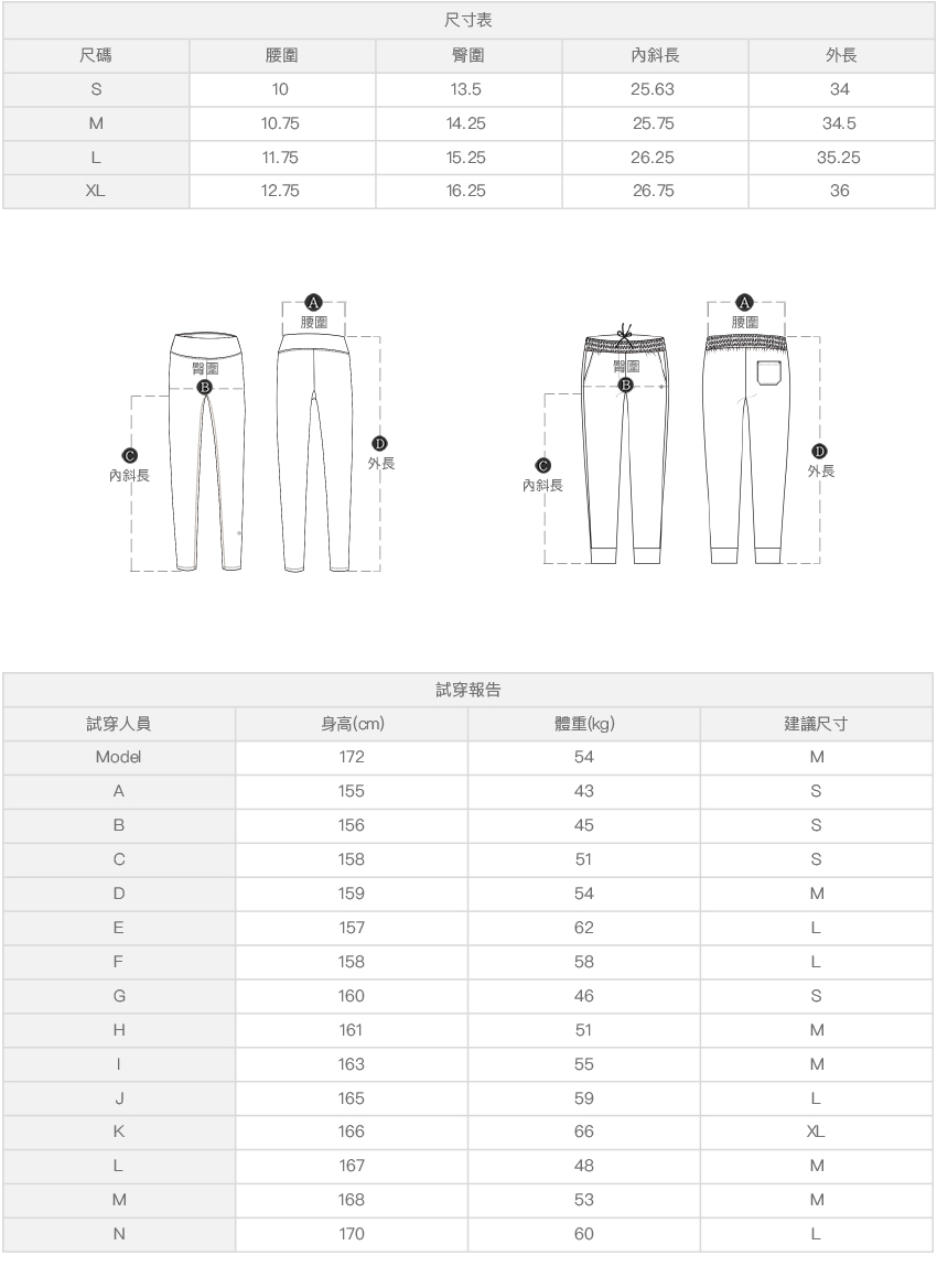 ※ 尺寸表及試穿報告僅提供尺碼對照資訊,實際合身程度則依據各款設計與各自身型會有所不同。