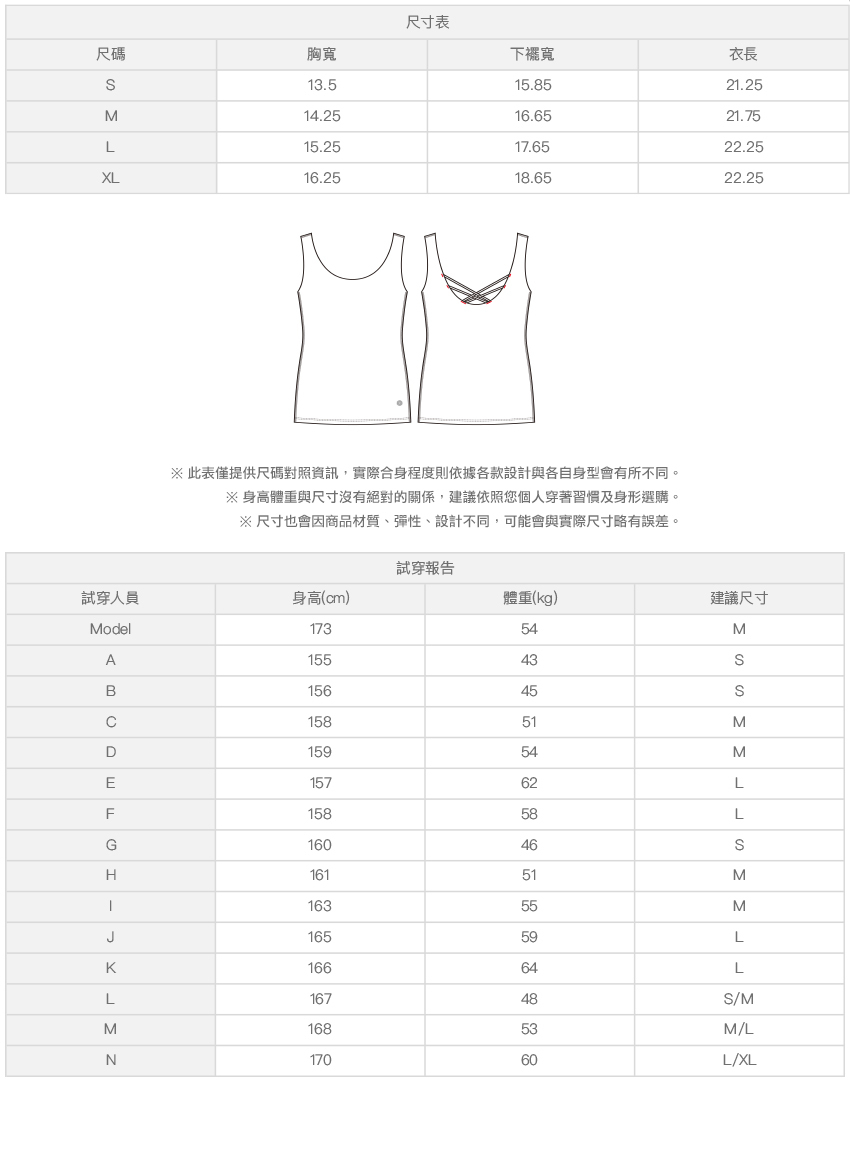 ※ 尺寸表及試穿報告僅提供尺碼對照資訊,實際合身程度則依據各款設計與各自身型會有所不同。