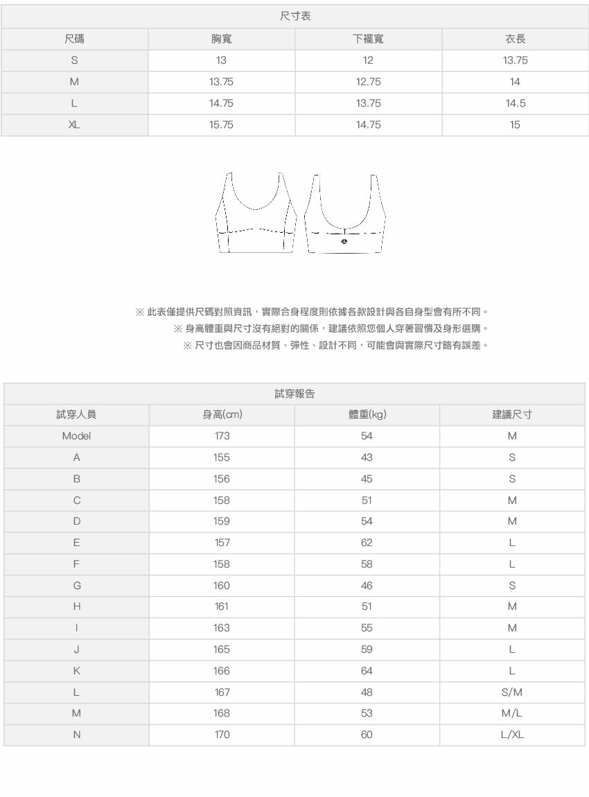 6. 上衣版型偏小,下胸圍彈性版帶較緊,喜歡舒適穿著者,建議大一尺碼選擇。