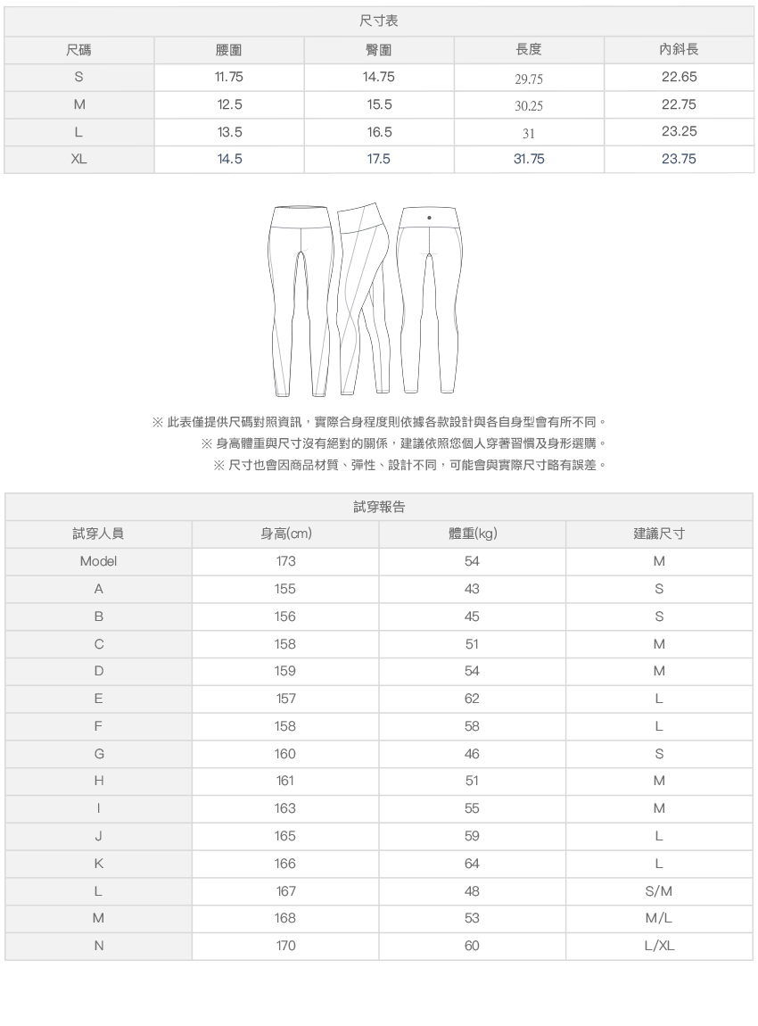 ※ 尺寸表及試穿報告僅提供尺碼對照資訊,實際合身程度則依據各款設計與各自身型會有所不同。