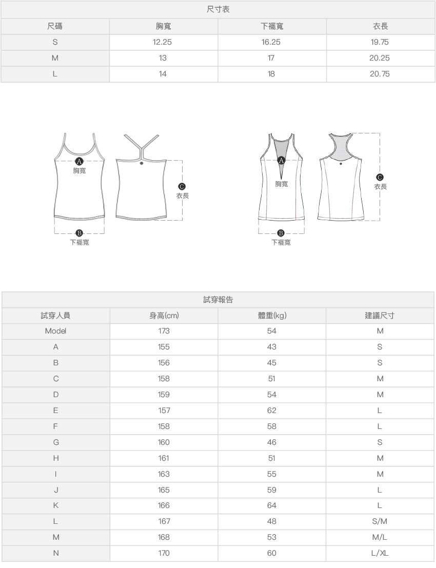 ※ 尺寸表及試穿報告僅提供尺碼對照資訊,實際合身程度則依據各款設計與各自身型會有所不同。