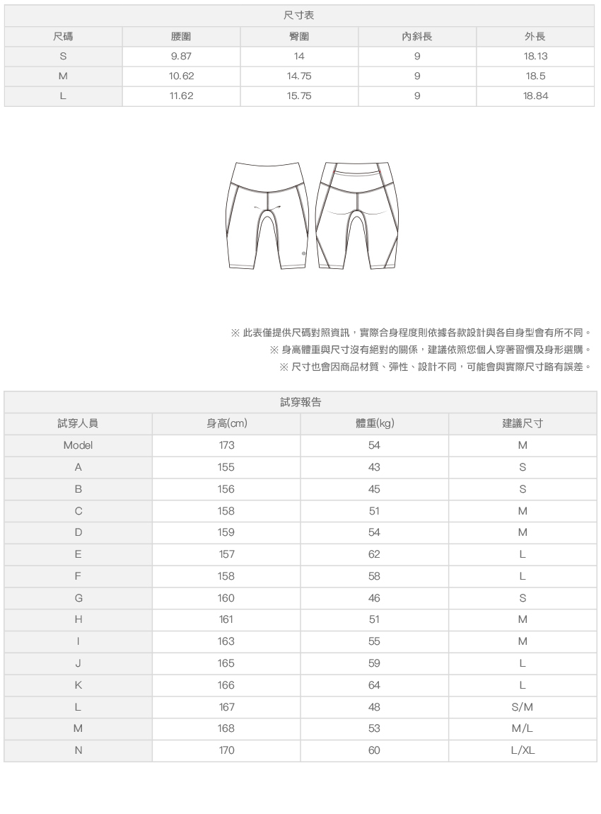 ※ 尺寸表及試穿報告僅提供尺碼對照資訊,實際合身程度則依據各款設計與各自身型會有所不同。