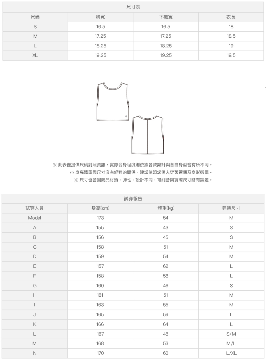 ※ 尺寸表及試穿報告僅提供尺碼對照資訊,實際合身程度則依據各款設計與各自身型會有所不同。