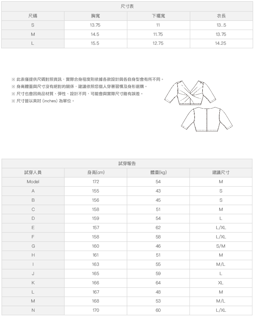※ 尺寸表及試穿報告僅提供尺碼對照資訊,實際合身程度則依據各款設計與各自身型會有所不同。