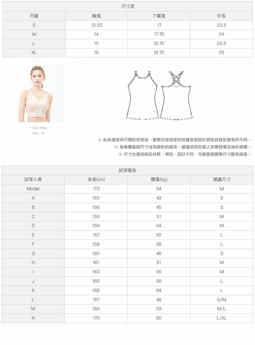5. 上衣版型偏小,下胸圍彈性版帶較緊,喜歡舒適穿著者,建議大一尺碼選擇。