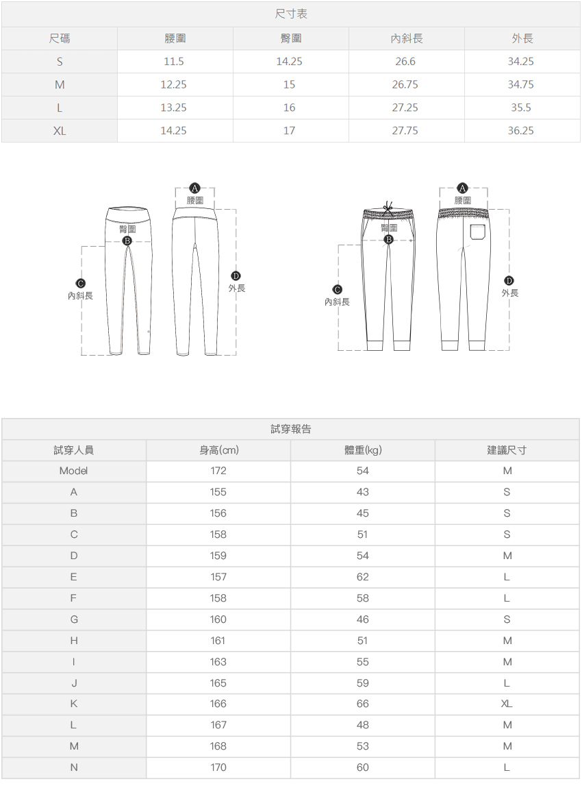 ※ 尺寸表及試穿報告僅提供尺碼對照資訊,實際合身程度則依據各款設計與各自身型會有所不同。