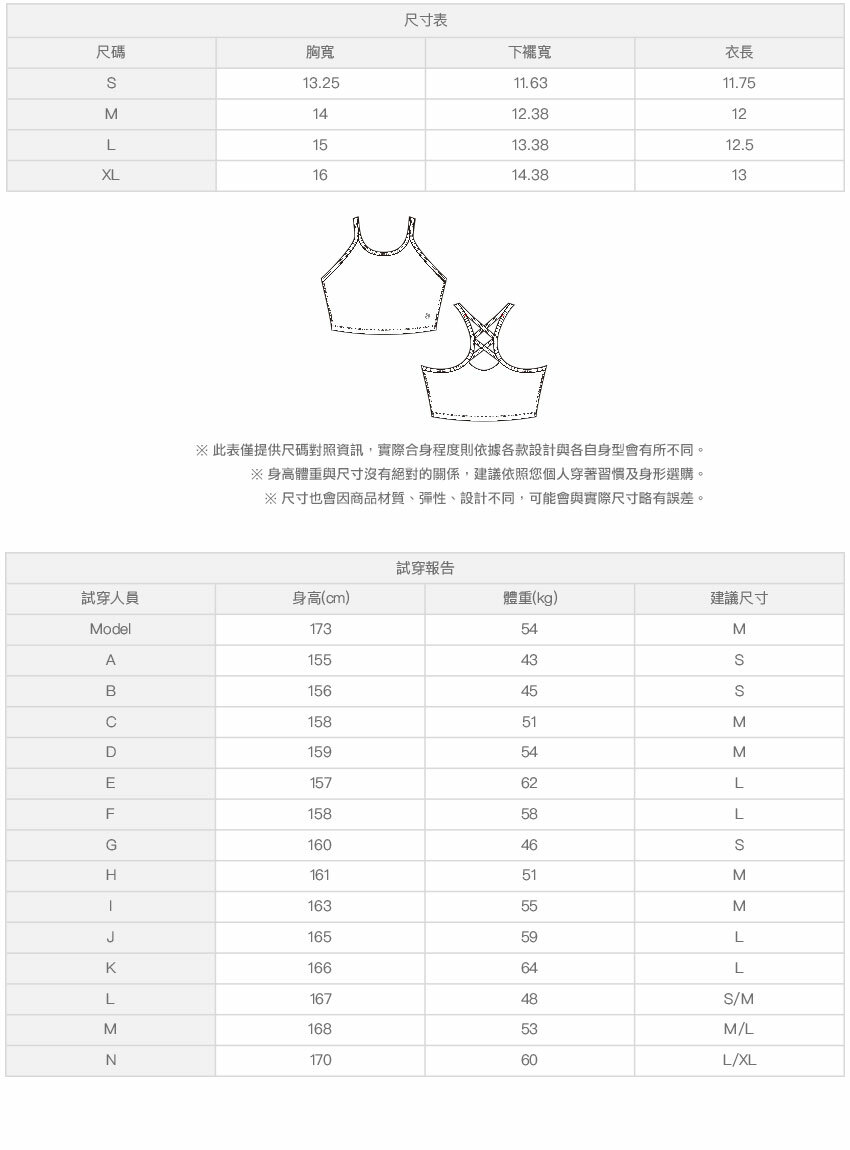 ※ 尺寸表及試穿報告僅提供尺碼對照資訊,實際合身程度則依據各款設計與各自身型會有所不同。