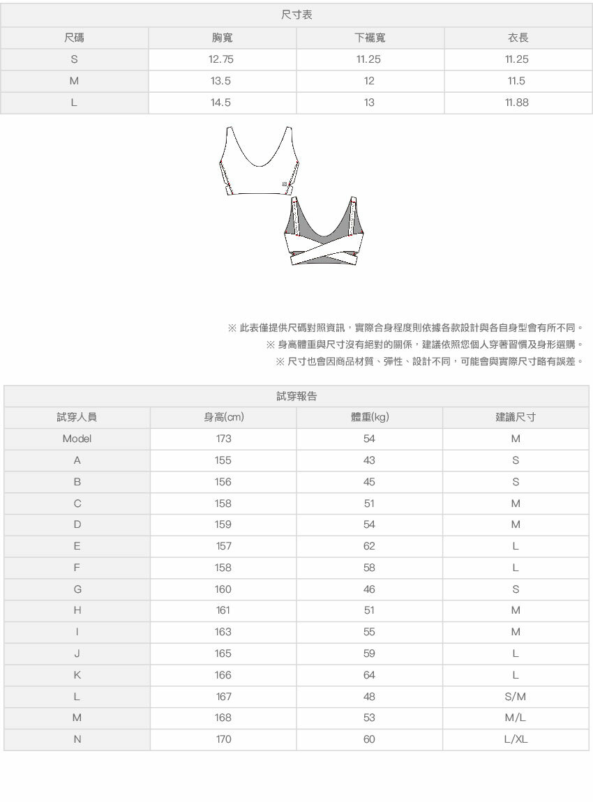 ※ 尺寸表及試穿報告僅提供尺碼對照資訊,實際合身程度則依據各款設計與各自身型會有所不同。