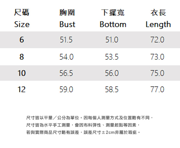 ※ 尺寸表及試穿報告僅提供尺碼對照資訊,實際合身程度則依據各款設計與各自身型會有所不同。