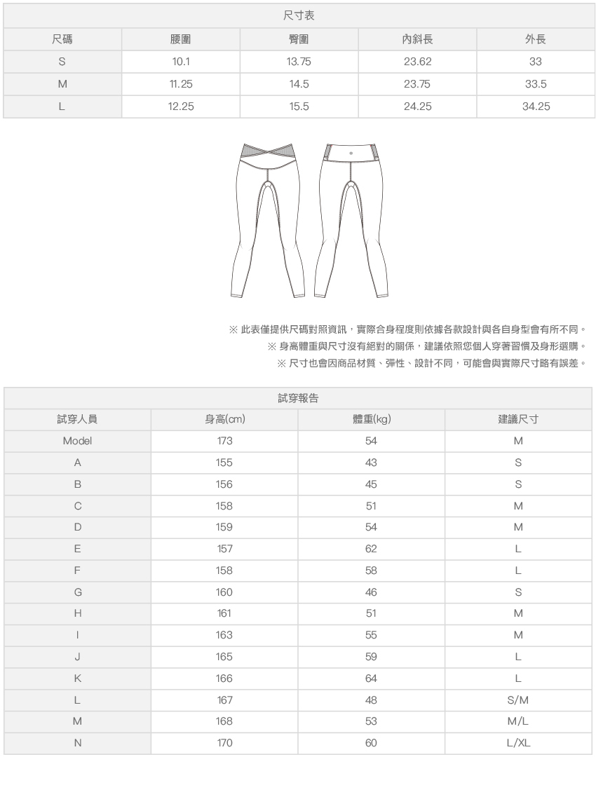 ※ 尺寸表及試穿報告僅提供尺碼對照資訊,實際合身程度則依據各款設計與各自身型會有所不同。