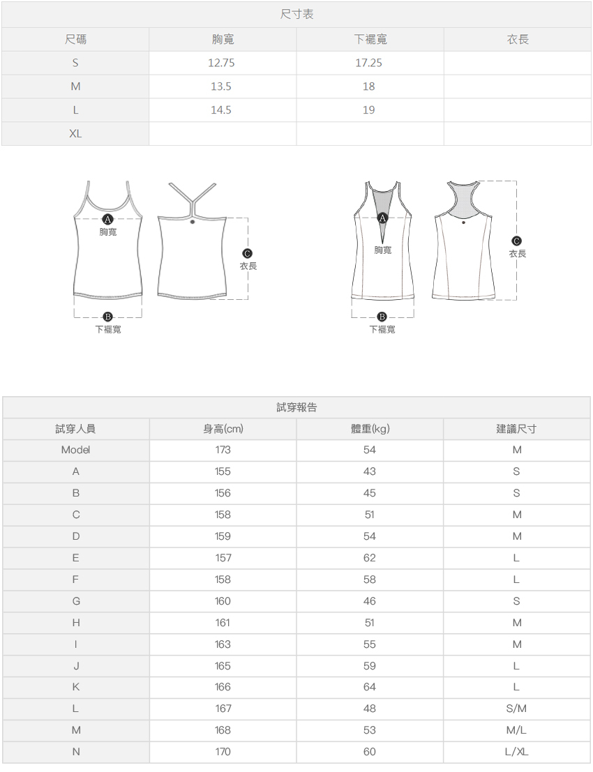 ※ 尺寸表及試穿報告僅提供尺碼對照資訊,實際合身程度則依據各款設計與各自身型會有所不同。