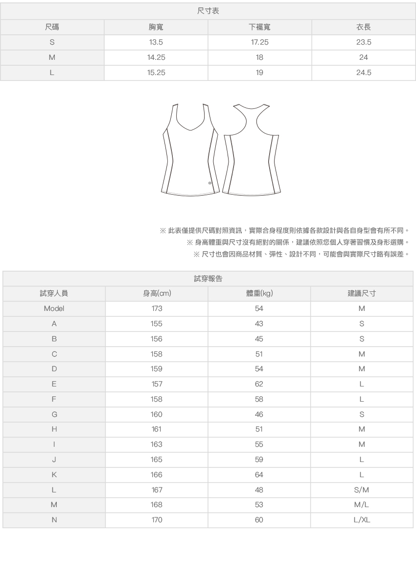 ※ 尺寸表及試穿報告僅提供尺碼對照資訊,實際合身程度則依據各款設計與各自身型會有所不同。