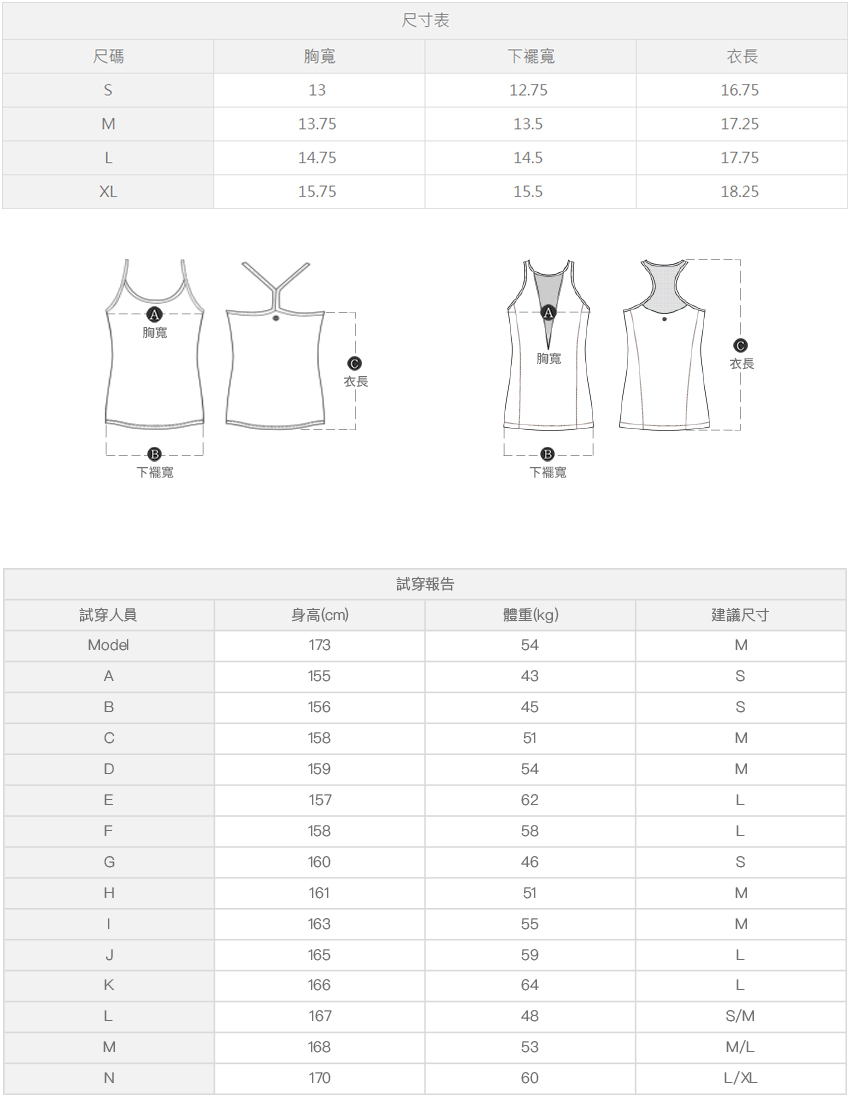 ※ 尺寸表及試穿報告僅提供尺碼對照資訊,實際合身程度則依據各款設計與各自身型會有所不同。