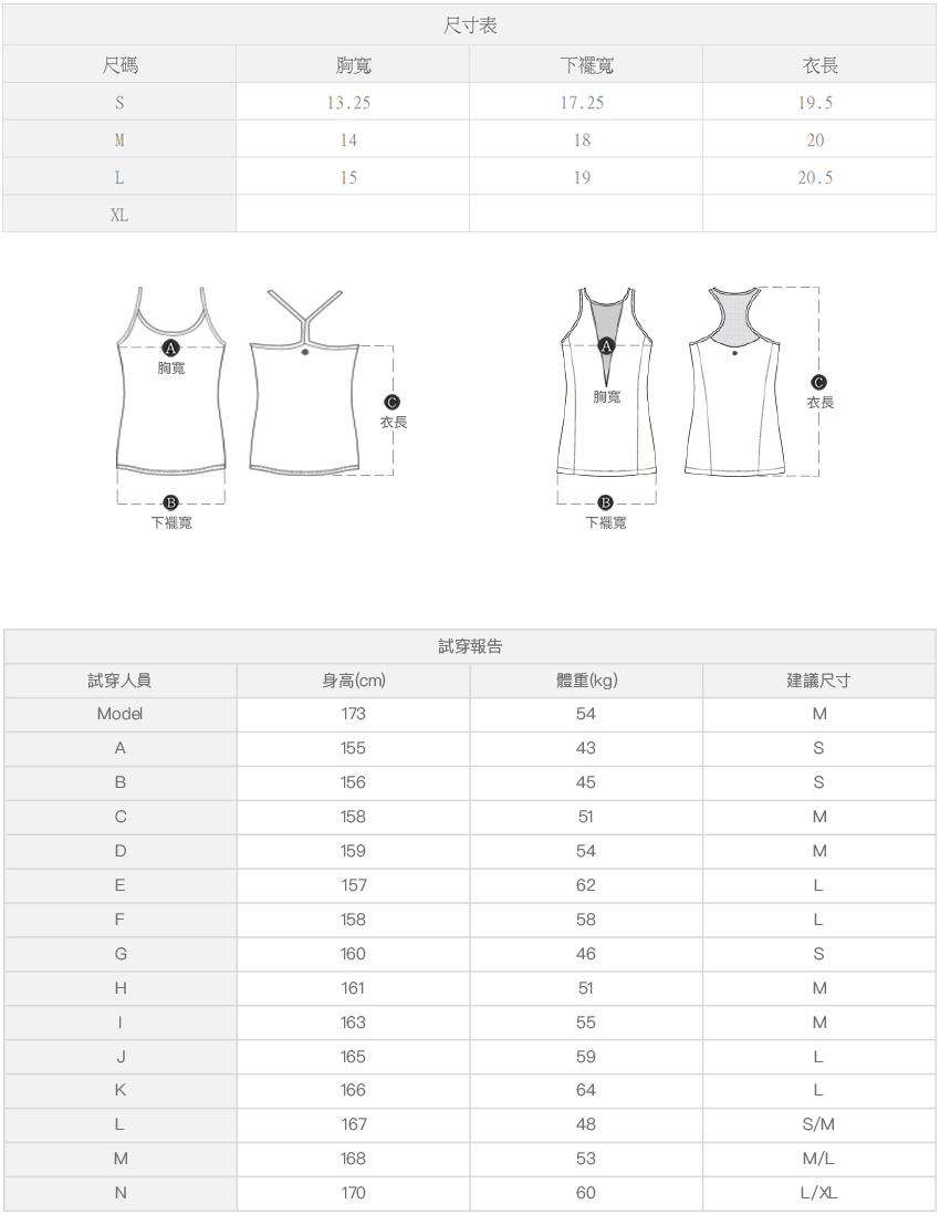 ※ 尺寸表及試穿報告僅提供尺碼對照資訊,實際合身程度則依據各款設計與各自身型會有所不同。