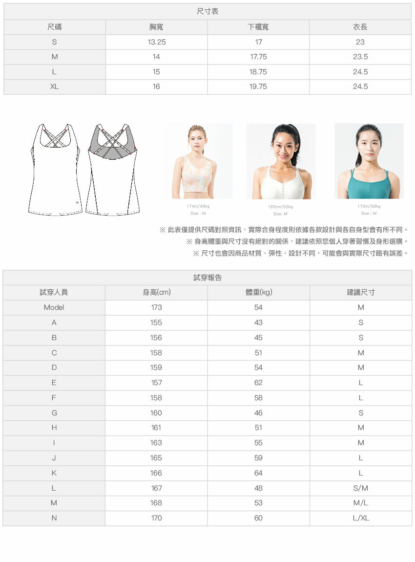 5. 上衣版型偏小,下胸圍彈性版帶較緊,喜歡舒適穿著者,建議大一尺碼選擇。