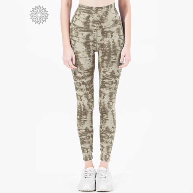 easyoga|瑜珈服|高腰包腹九分褲 - 扎染米卡調_khaki dye 2202888PFH3