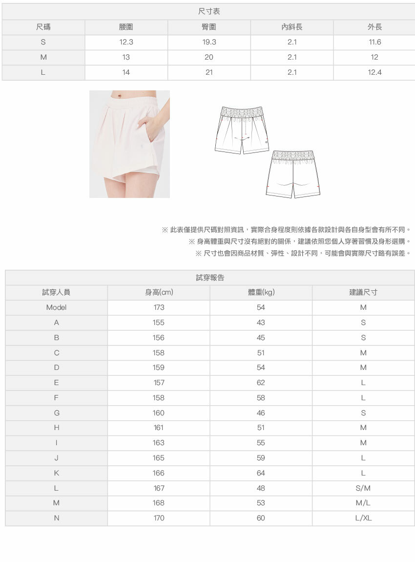 ※ 尺寸表及試穿報告僅提供尺碼對照資訊,實際合身程度則依據各款設計與各自身型會有所不同。
