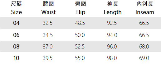 ※ 尺寸表及試穿報告僅提供尺碼對照資訊,實際合身程度則依據各款設計與各自身型會有所不同。