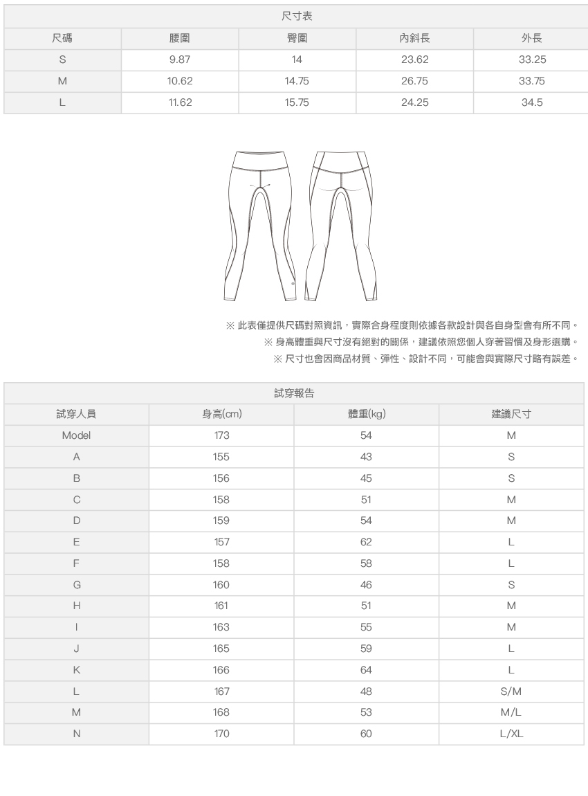 ※ 尺寸表及試穿報告僅提供尺碼對照資訊,實際合身程度則依據各款設計與各自身型會有所不同。